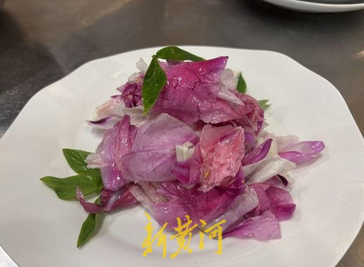 在菏泽市宴花都酒店,店员将凉拌牡丹花的制作视频发到网络平台后,引发了网友的点赞、转发,有的网友甚至在网上购买牡丹花仿照教程制作。让人意想不到的食材和简单易上手的做法,引得众多网友跃跃欲试。“其实凉拌牡丹是牡丹花比较普遍的吃法,做法也十分简单。牡丹花瓣清洗干净,放上蜂蜜、白糖、苹果醋、盐,浇上菏泽人爱吃的香油,这道颜色明艳、口感香甜的凉拌牡丹就做成了。”厨师李磊介绍说。